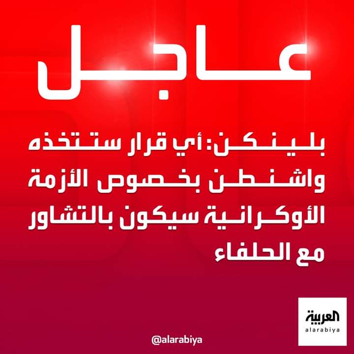 ماهو انا.. هو السبببلينكن: أي قرار ستتخذه واشنطن بخصوص الأزمة الأوكرانية سيكون بالتشاور مع الحلفاء