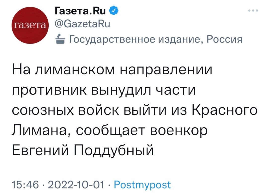 اي ان بوطين خائن وسلم اراضي روسيهفى اعتقادى مايحدث يتم بالاتفاق بين الروس والغرب مثل ماقلت منذ يومين ليمان مدينة صغيرة جدا فى دونيتسك ليس لها اهمية مساحتها لاتتعدى 20كم يعنى تقريبا لاتتعدى .01 من مساحة دونيتسك فى اعتقادى نهاية الحرب اصبحت قريبة جد