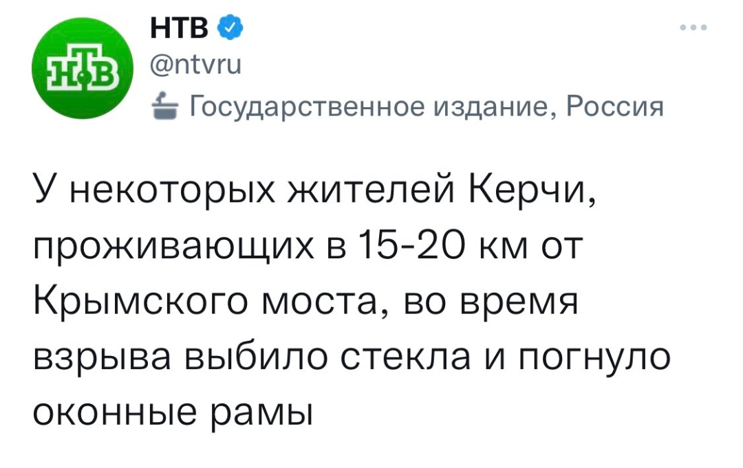أفاد بعض سكان كيرتش ، الذين يعيشون على بعد 15-20 كم من جسر القرم ، بإنحناء إطارات النوافذ و تكسر زجاجها أثناء حدوث الإنفجار .