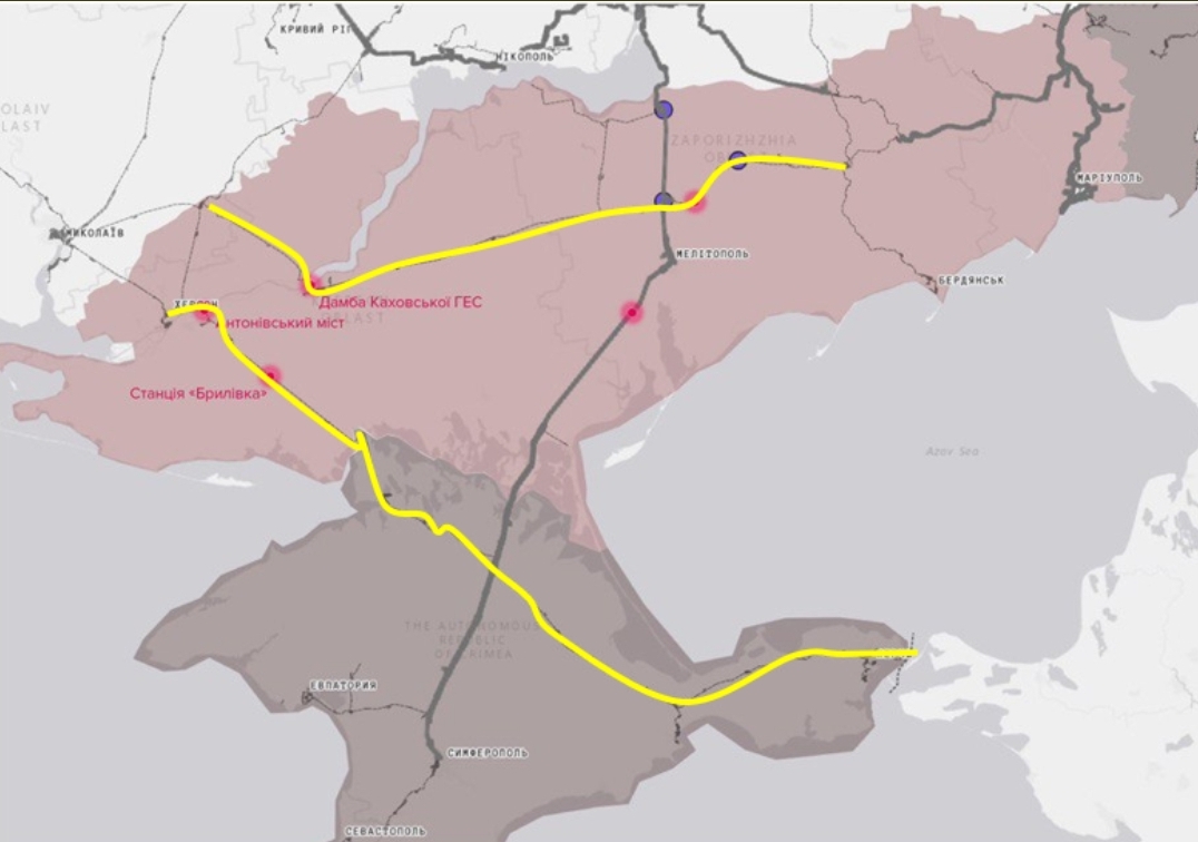 ويعتبر هذا الخط هو أحد خطي إمداد للقوات الروسية في خيرسون و تعليق إستخدامه سوف يعقد الإمداد لهذه القوات .