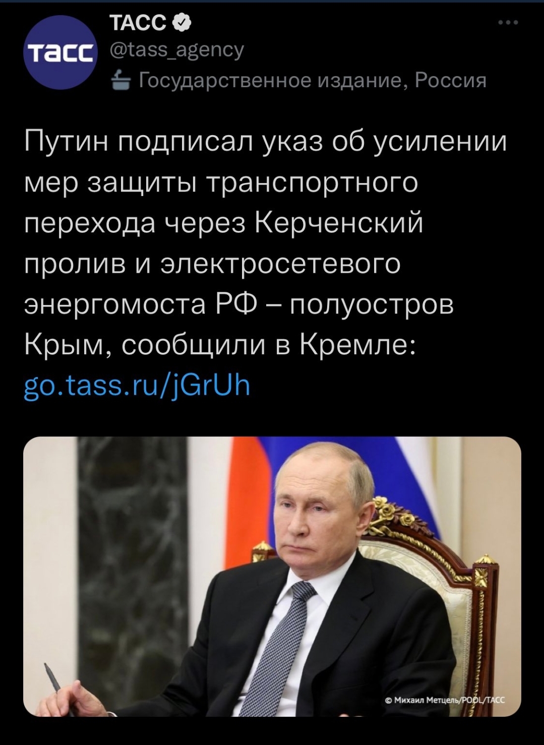وقع بوتين مرسوما بشأن تعزيز تدابير حماية معبر النقل عبر مضيق كيرتش وشبكة الكهرباء في الإتحاد الروسي