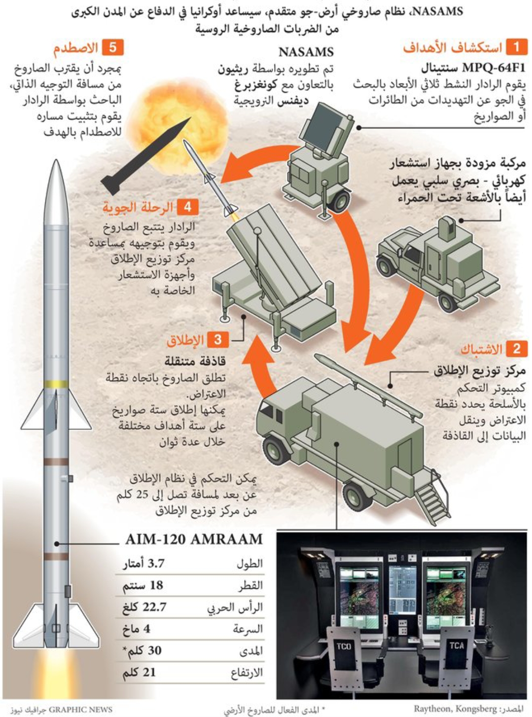 اذن ربما نرى منظومة ال NASAMS II قريبا، المرفق هو انفوكرافيك مفيد للمهتم كونه يعطي وصف عام للمنظومه وآلية عمل المنظومه، كما هو معلوم فانها انتاج مشترك نرويجي - امريكي ، ال C4I نرويجي (شركة كونكسبيرك ديفينس) ومنظومة الصواريخ والرادار امريكي ( رايثون - لوكهيد مارتن ) ومنظومه الكشف والتتبع البصري الماني (راينميتال) علما ان المنظومه موصله مع ال Link-16 network، مما يدعمها بمشاركة وتبادل tactical picture in near-real time مع عدد كبير من منظومات ال ISR الجويه والمقاتلات وانظمه الدفاع الجوي الاخرى مثل الباتريوت والثاد.