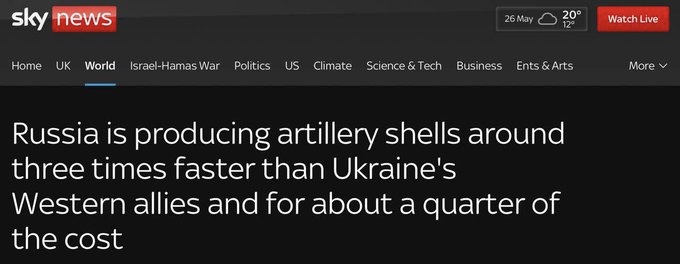 تنتج روسيا قذائف مدفعية أسرع بنحو ثلاث مرات من إنتاج حلفاء أوكرانيا الغربيين وبنحو ربع التكلفة