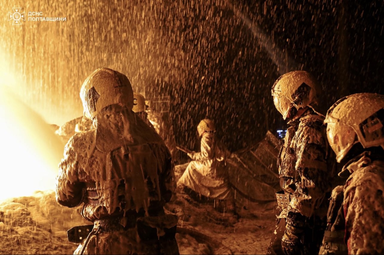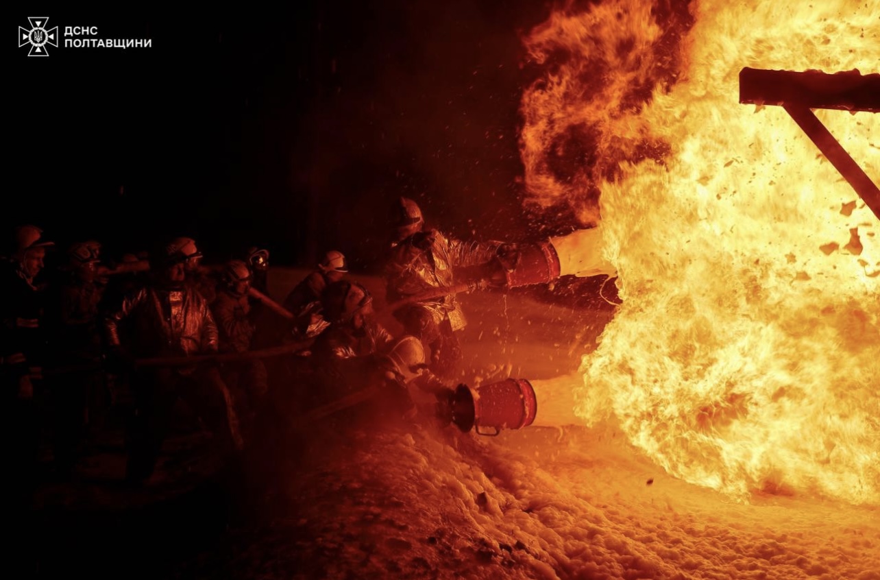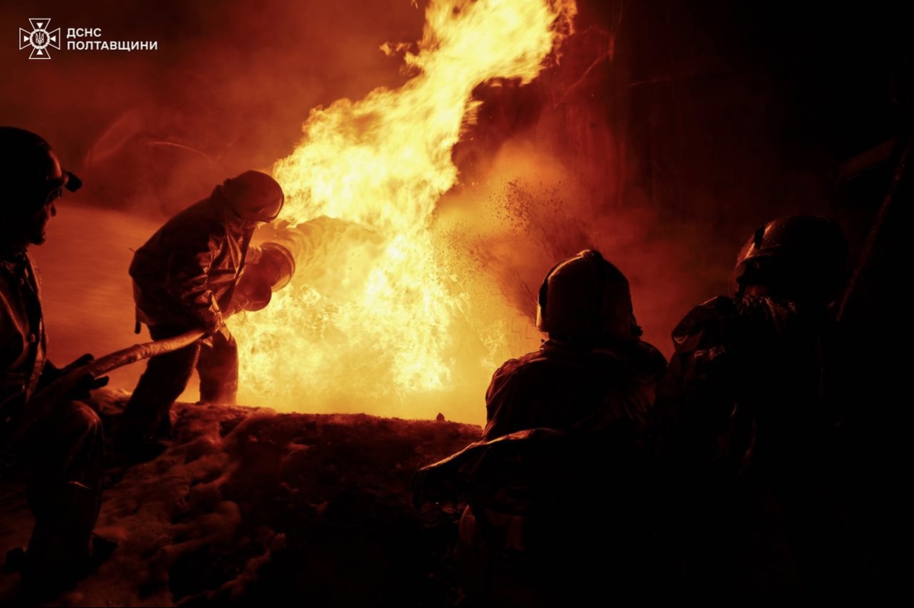 في أعقاب غارة جوية روسية على مستودع النفط في هادياتش في منطقة بولتافا باستخدام طائرات جيران-2 بدون طيار (13 نوفمبر 2024، في وقت متأخر من المساء).