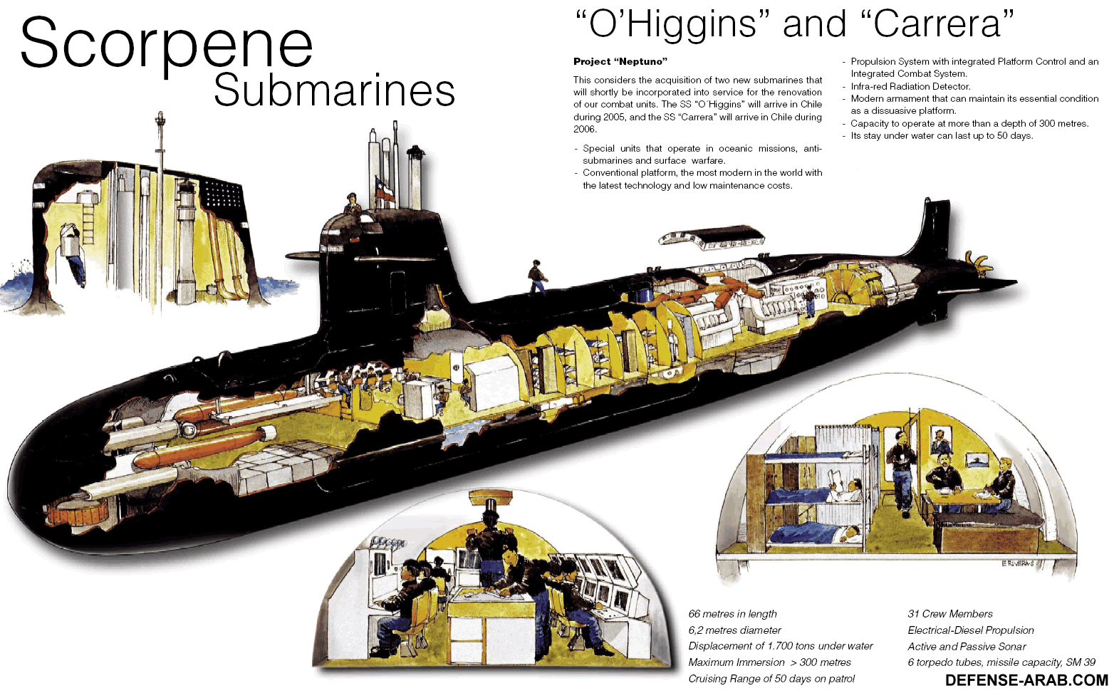 - الغوَّاصَة الإسبَانِيَّة Scorpene SSK ، سِعْرُها : 825 مليُون دُولاَر {صِناعة مُشتَرَكَة بين المَجْمَع الفرنسِيّ DCNS والإسبانِي Navantia}