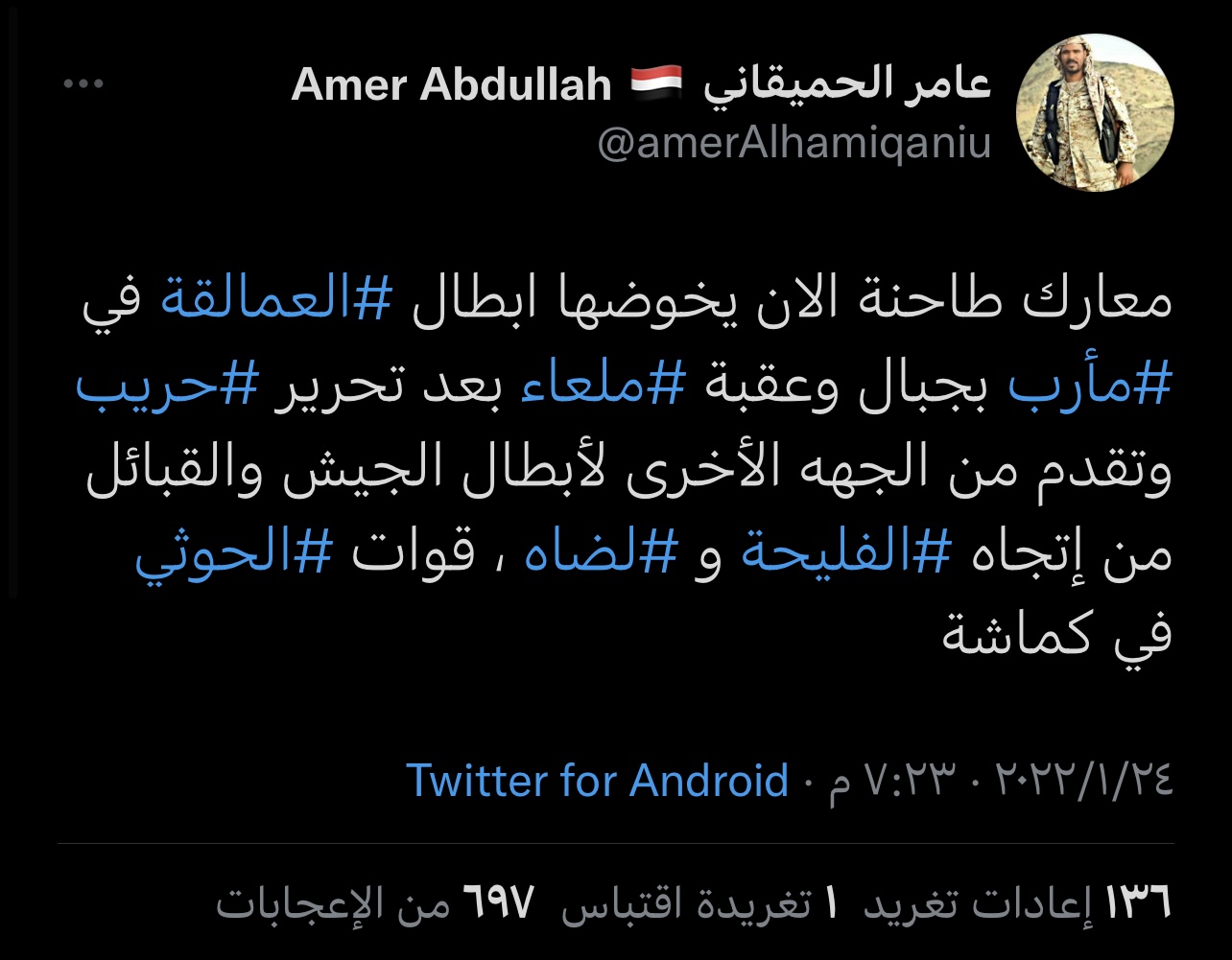 من الأخير لن ينصلح حال اليمن والقبائل وجميع المكون اليمني يقدس مدعي النسب الشريف ..