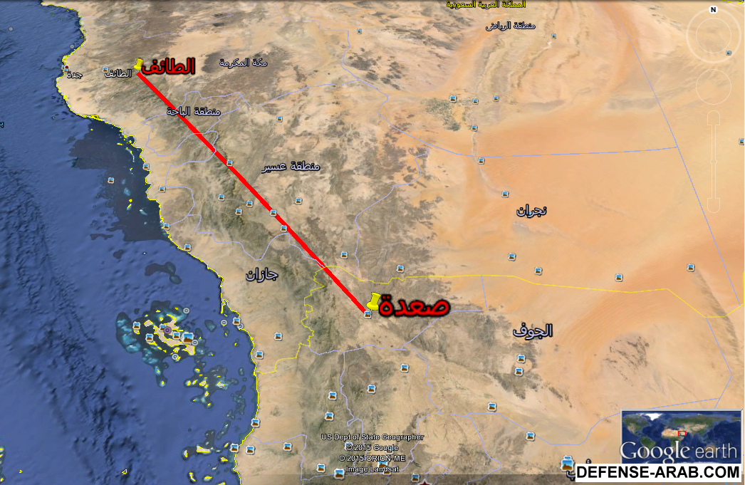 عندك المسافة من الطائف الى صعدة 607 كيلومتر طبعاً الطائرات اف 15 تتجاوز سرعتها 2 ماخ والاف 16 تقريبا اقل من الاف 15 بقليل (الفارق من 0.3-0.2 ماخ )..