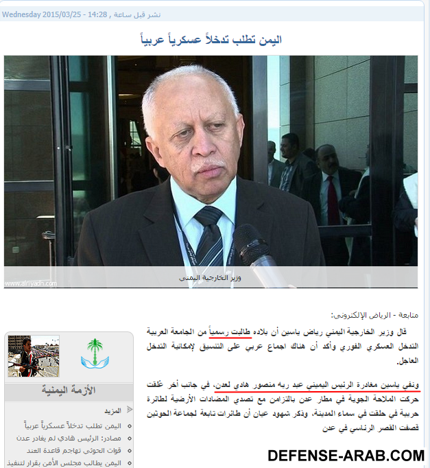 وزير الخارجية اليمني: دول الخليج ومصر وافقوا على طلب التدخل عسكريا في#اليمن