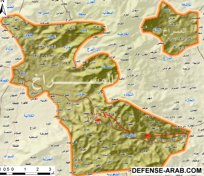 المسراخ المدينة في عزلة العرش تقريبا عند الظهرة والمعارك هناك عنيفة جدا الليلة والمنطقة كلها احراش وتم قبل قليل عمل كمين ومقتل 8 حوثيين وجرح 14