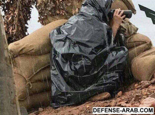 صورة مؤثرة لجندي مرابط في #الحد_الجنوبي لم يمنعه المطر وقسوة البرد من رصد الأعداء.