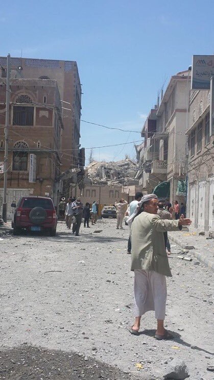مكان الإجتماع بقصر الرئاسة في صنعاء الذي تم قصفه التحالف بغارتين قبل قليل ...