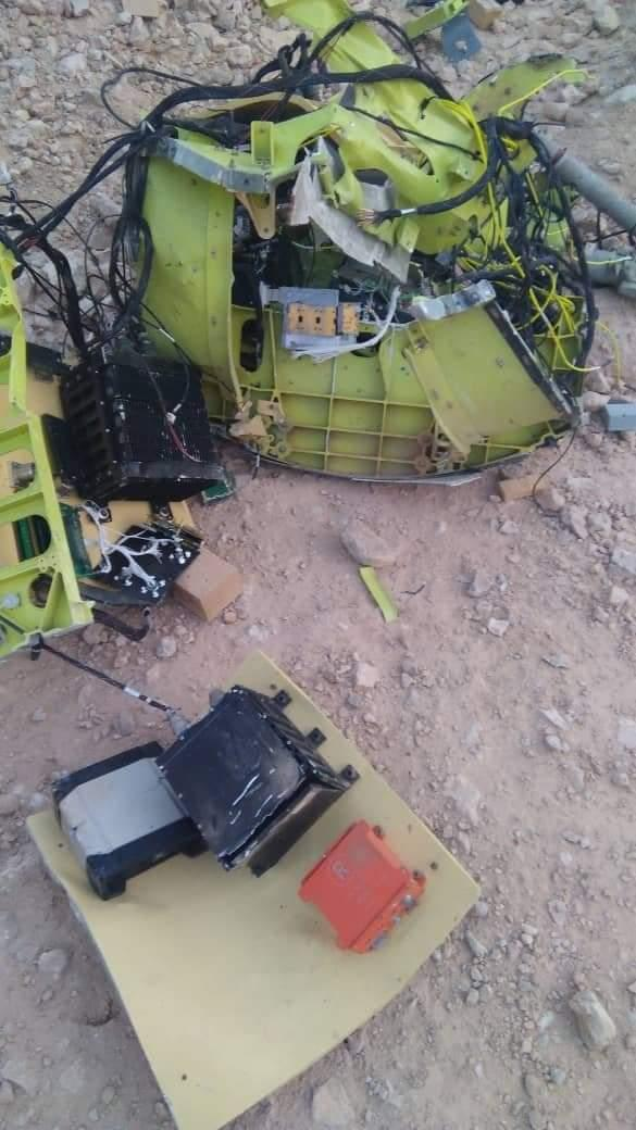 الطائرة كبيرة وب٤ عجلات تم تدميرها من قبل الباتريوت الى الان لا احد يعرف ماهياشك أن تكون الطائرة حوثية