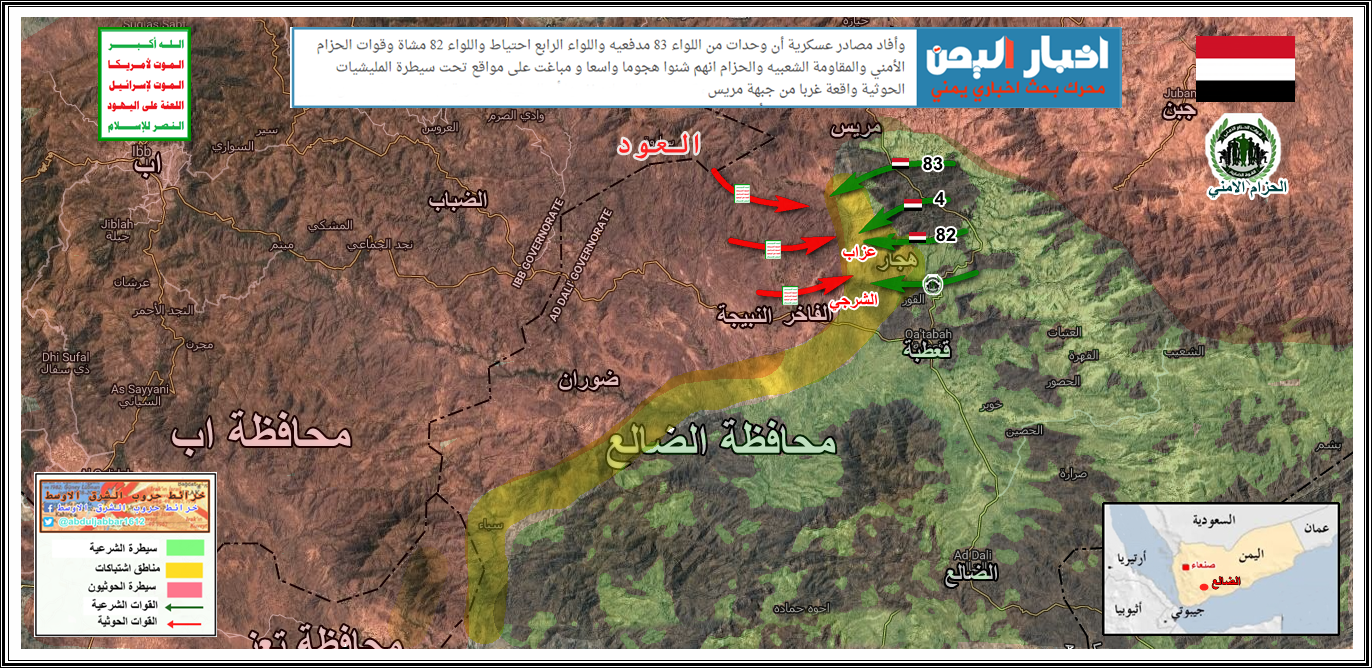 هجوم موسع تشترك فيه وحدات من اللواء 83 مدفعية واللواء 82 واللواء الرابع والحزام الامني من اجل استعادة مناطق غرب مريس تجاه منطقة العود والتي سيطرت عليها القوات الحوثية بداية العمليات في المنطقة قبل اسابيع