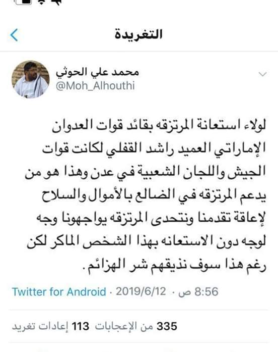 لاني دخلت علي توتير مدعو محمد علي الحوثي ما لقيت هذا التويت