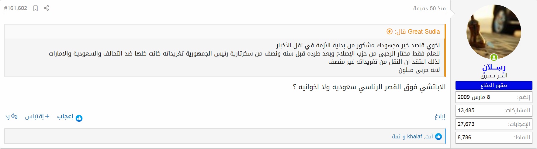 انت مندفع جدا وبعد ذلك تلوم من يهاجمك