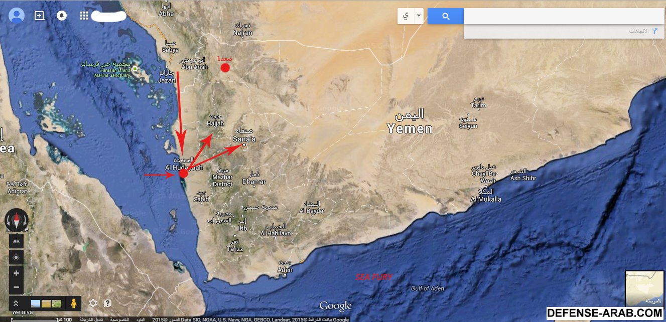 خارطة 2 ( الاسهم بالاحمر تمثل تحركات القوات اليمانية بعد تجهيزها و تدريبها )