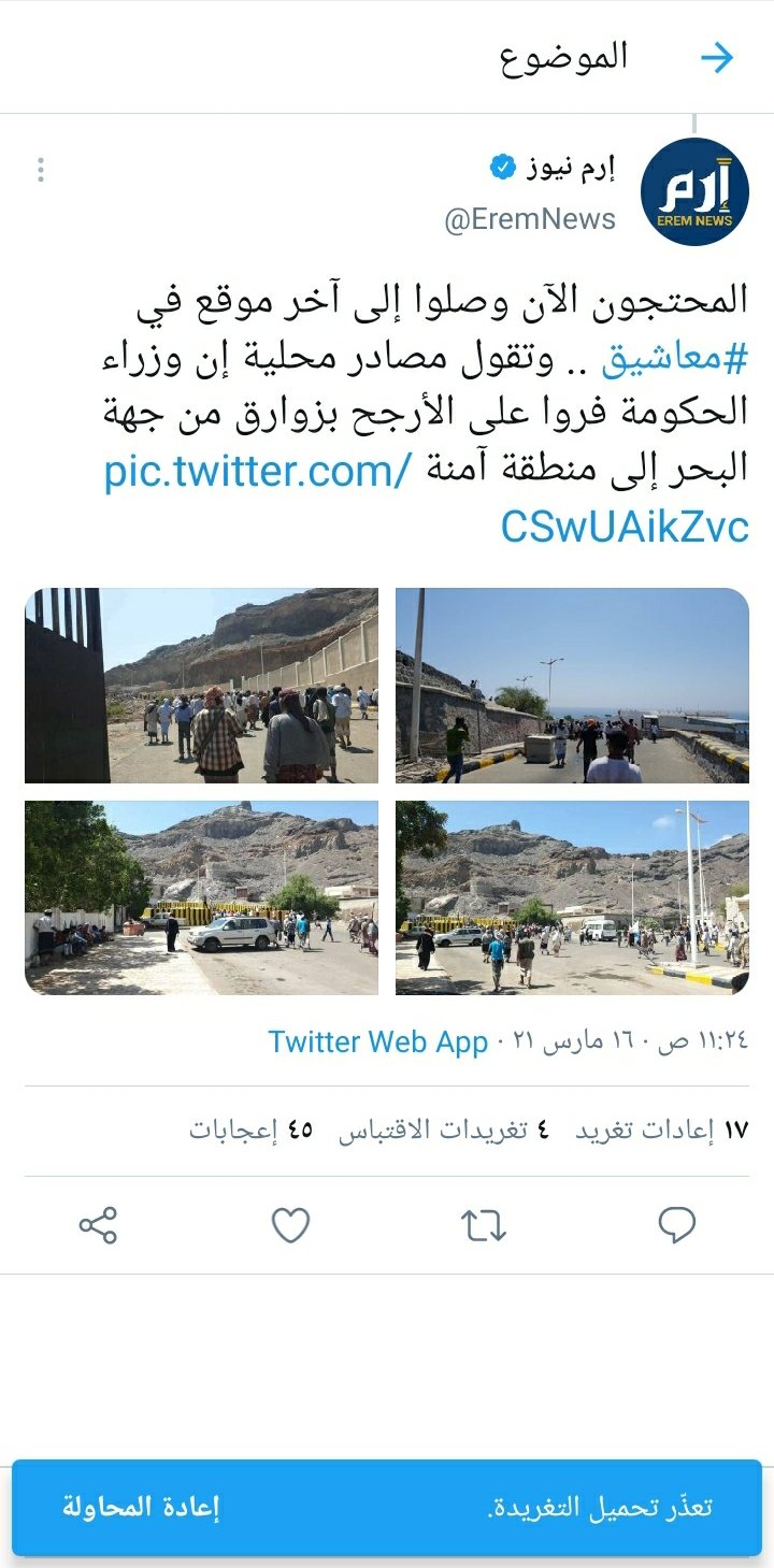 يقال بأن الحكومة تحت الحمايه السعوديه داخل القصر .. ارم نيوز .. تحاول تتمصخر وتتندى بنشر خبر هروب الحكومه ..