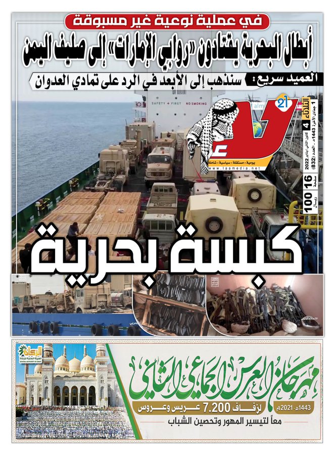 تتوقع ممكن يصير تحرك لتحرير السفينة بالقوة ولا راح نبلعها و نمشي الليلة؟لاقوا سفينة مسجلة من جيزان الى سقطرى او العكس و طبوا عليها، و على حظهم لقيو اللي لقيوه.