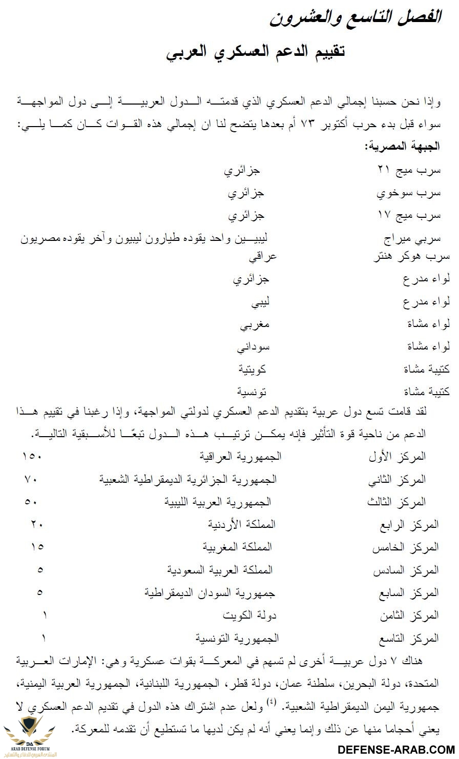 ” تجمعت لدينا معلومات تفيد بوجود سربين من طائرات الميج 21 في ذلك المطار جنوب شرق القاهرة. وكانت وظيفتهم حماية الجهة الجنوبية الشرقية من القاهرة. قبل وصولهم. كانت الحماية الجوية لمصر بأيدي القوات السوفييتية والذين تجاوز عددهم العشرون الف .خمسة اسراب من الطائرات. بطاريات صواريخ ارض جو. قوات مقاتله مخابرات ومستشارين. بعد طرد السوفييت من قبل السادات في تموز 1972 خشية ان تؤدي تدخلاتهم الى زعزعة استقرار حكمه. بعد خروج السوفييت اصبحت الحماية الجوية المصرية ناقصه وهشه. بالإضافة الى الكوريون الشماليون كان هنالك ليبيون وعراقيون. وعلى الجبهة السورية كان طيارون باكستانيون “