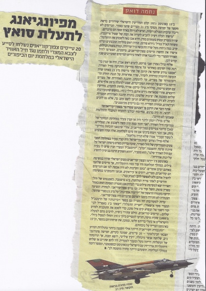 ” تجمعت لدينا معلومات تفيد بوجود سربين من طائرات الميج 21 في ذلك المطار جنوب شرق القاهرة. وكانت وظيفتهم حماية الجهة الجنوبية الشرقية من القاهرة. قبل وصولهم. كانت الحماية الجوية لمصر بأيدي القوات السوفييتية والذين تجاوز عددهم العشرون الف .خمسة اسراب من الطائرات. بطاريات صواريخ ارض جو. قوات مقاتله مخابرات ومستشارين. بعد طرد السوفييت من قبل السادات في تموز 1972 خشية ان تؤدي تدخلاتهم الى زعزعة استقرار حكمه. بعد خروج السوفييت اصبحت الحماية الجوية المصرية ناقصه وهشه. بالإضافة الى الكوريون الشماليون كان هنالك ليبيون وعراقيون. وعلى الجبهة السورية كان طيارون باكستانيون “