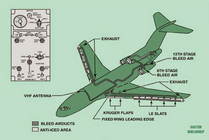 LEADING EDGES وكذلك للجزء الأمامي من المحرك حيث يوجد أنبوب يدور حوله بالكامل لضمان عدم تكون الثلج.