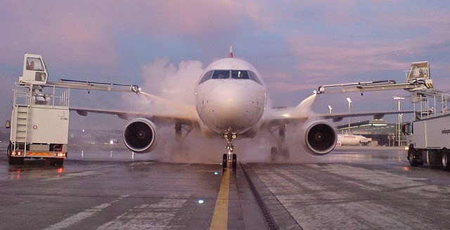 بعض أسطح الطائرات ترش بمواد كيميائية مثل ميثيل الكحول