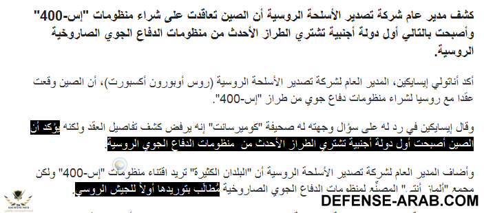 الصفقة الروسية الصينية في شهر ابريل الماضي يعني بعد التقارير التي قمت بوضعها بشهر ومع ذلك قال المسئولون عن تصنيع المنظومة ان الصين اول زبون اجنبي يحصل عليها وهو ما ينفي صحة ما جاء بتلك التقارير التي تستشهد بها