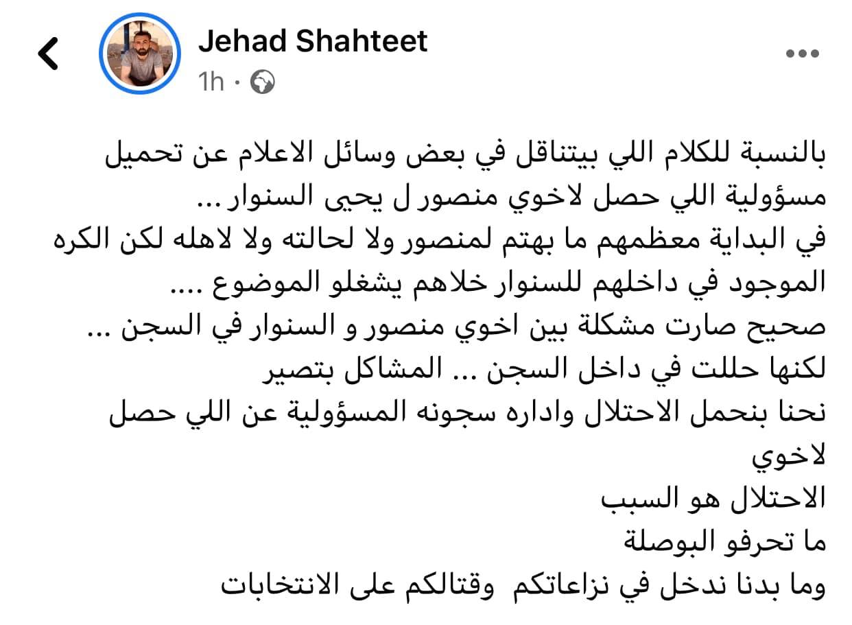 إعلام قذراخ الأسير منصور الشحاتيت يرد على كلام قناة العبرية