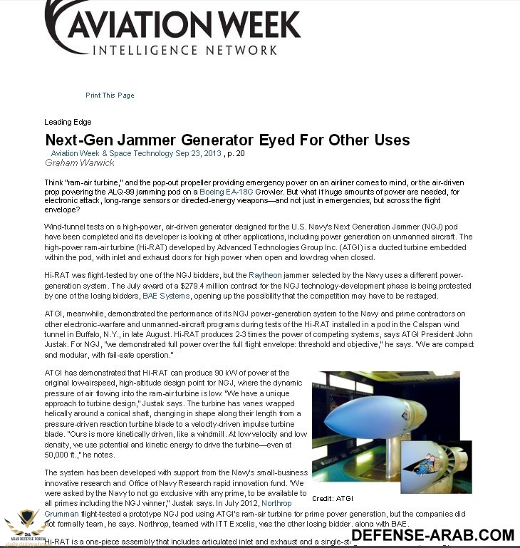 When they are ready for a jamming mission, it can deploy taking in air and produce an excess of three times more power from the airstream than the ALQ-99,” Lowery says