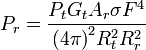σ = المقطع العرضي للرادار