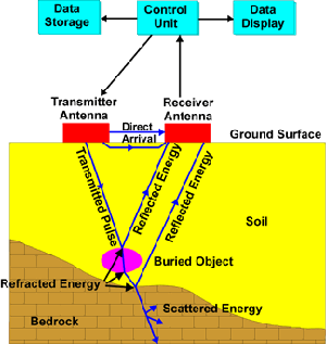 طريقة واحدة لقياس بعد الهدف وهي إرسال نبضة قصيرة من موجة الراديو (إشعاع كهرومغناطيسي)