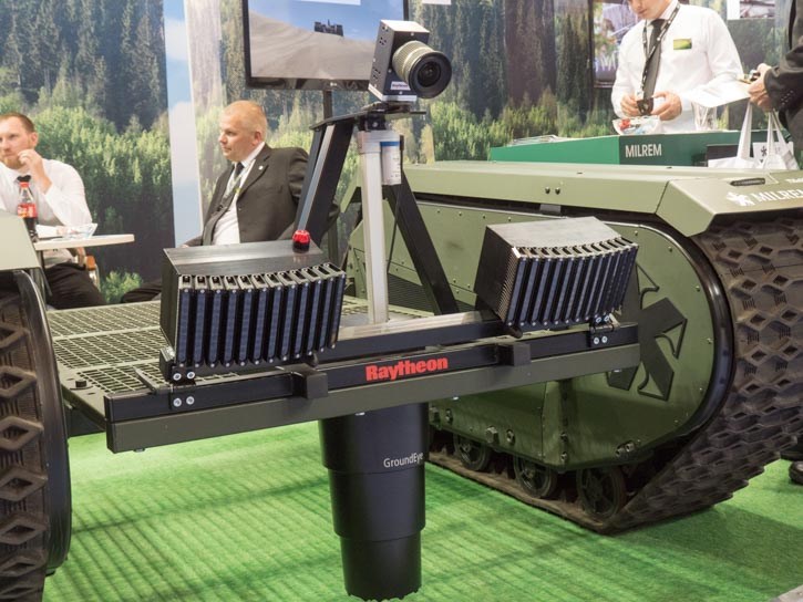 The third Milrem vehicle can be found at the Estonian Pavilion with other Estonian defence companies. The vehicle there is equipped with the GroundEye, an IED detection devices developed by Raytheon UK.