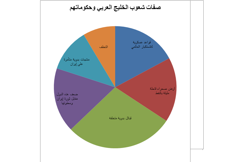 سادساً : توافق مذهبي – قومي استعلائي في صياغة توجهات إيران تجاه دول مجلس التعاون الخليجي، حيث تحاول الكتب المدرسية الإيرانية خلق نمط معين من الإدراك والتفكير تجاه دول مجلس التعاون الخليجي، من حيث أن هذا الموقف يتربّى ويترعرع عليه كل إيراني منذ الصغر ويكبر معه، ليتكرس بتأثير من الواقع السياسي ـ الاجتماعي الإيراني، لقد تأطرت تشابيه دول مجلس التعاون الخليجي وشعوبها من خلال رسم ملامح الصورة التي نستنج منها الصفات التالية: