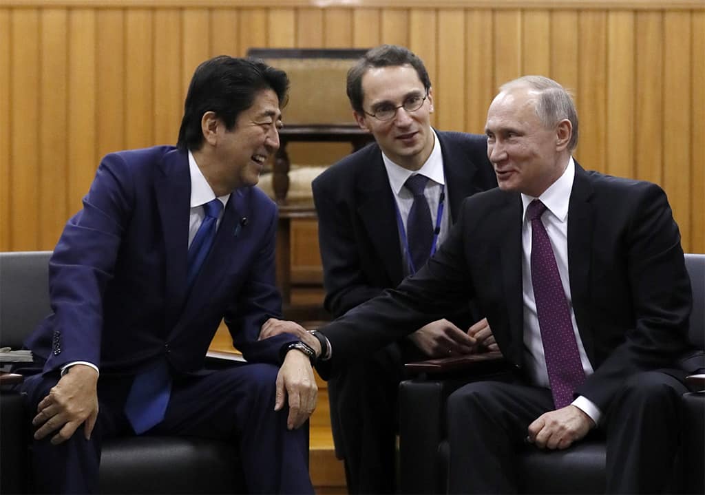 وبينما لم يعلق (آبي) على اتفاقية السلام هذه، وافق نظيره الروسي أن غياب اتفاقية بين البلدين أمر غير طبيعي، وقال أن علاقات بلاده مع روسيا تحمل ”إمكانيات لا محدودة“. وفي العاشر من شهر يوليو هذا العام، طرحت موسكو الموضوع مرة أخرى للنقاش وعرضت إطار عملية السلام على اليابان، لكن لم تحصل على إجابة وفق ما قاله وزير خارجيتها (سيرغي لافروف).