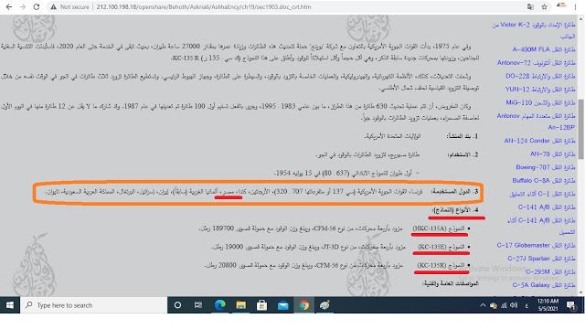 رابط صفحة الإستدلال من موسوعة مقاتل من الصحراء والتى تؤكد امتلاك مصر لطائرات التزود بالوقود بوينغ كيه سي -135