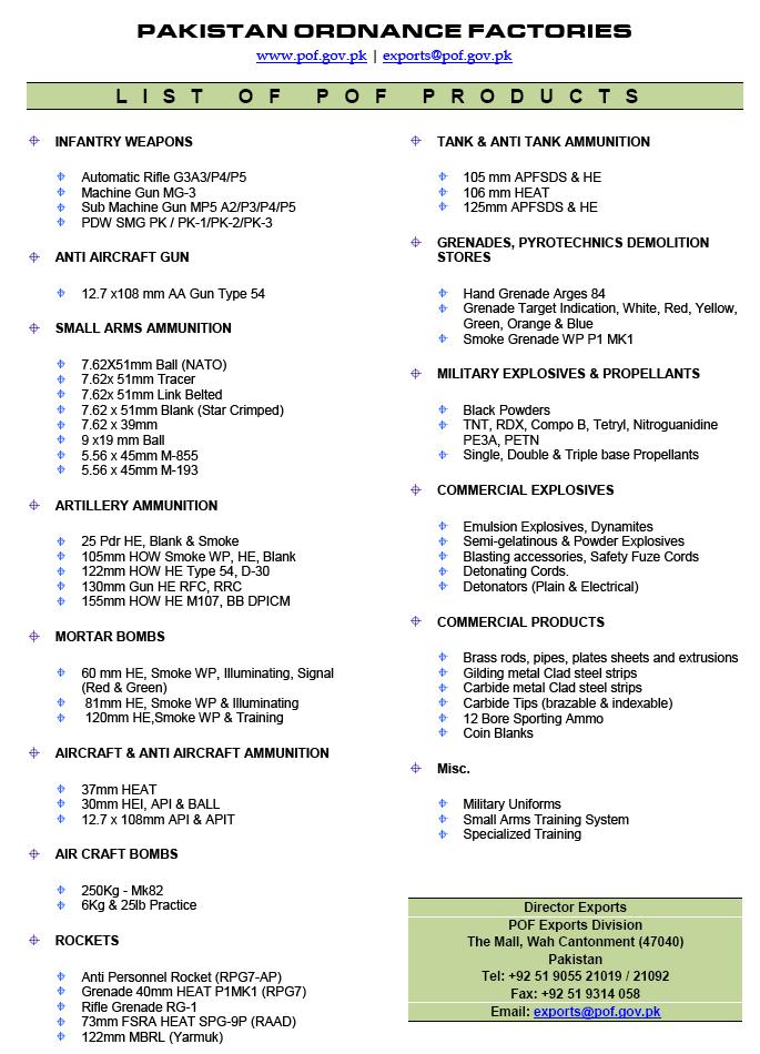 8 - مصانع الذخيرة الباكستانية Pakistan Ordinance Factories (POFs)