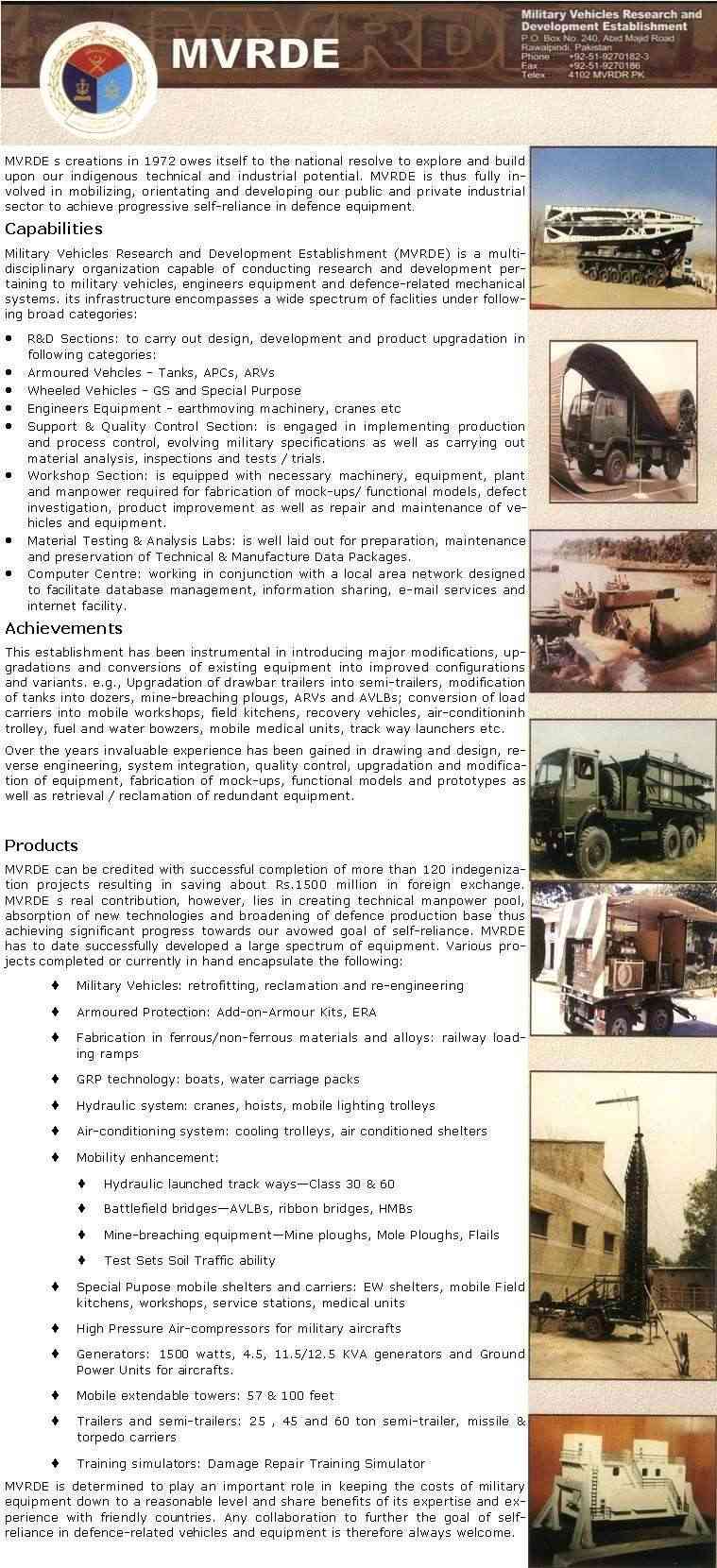 6 - مؤسسة ابحاث وتطوير المركباتMilitary Vehicles Research and Development Establishment (MVRDE)