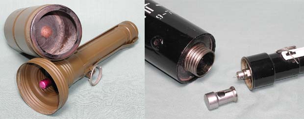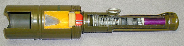 الحشوة : 310 غ من ماد شديدة الانفجار تحيط بالقمع الخارق للدرع