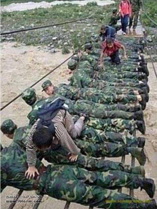 صورة لعدد من أفراد الجيش اليابانى منبطحون ليشكلوا جسراً لجماهير الشعب اليابانى أثناء أحداث تسونامى قبل عدة أشهر ليتسنى للمواطنين العبور من مكان لأخر ...
