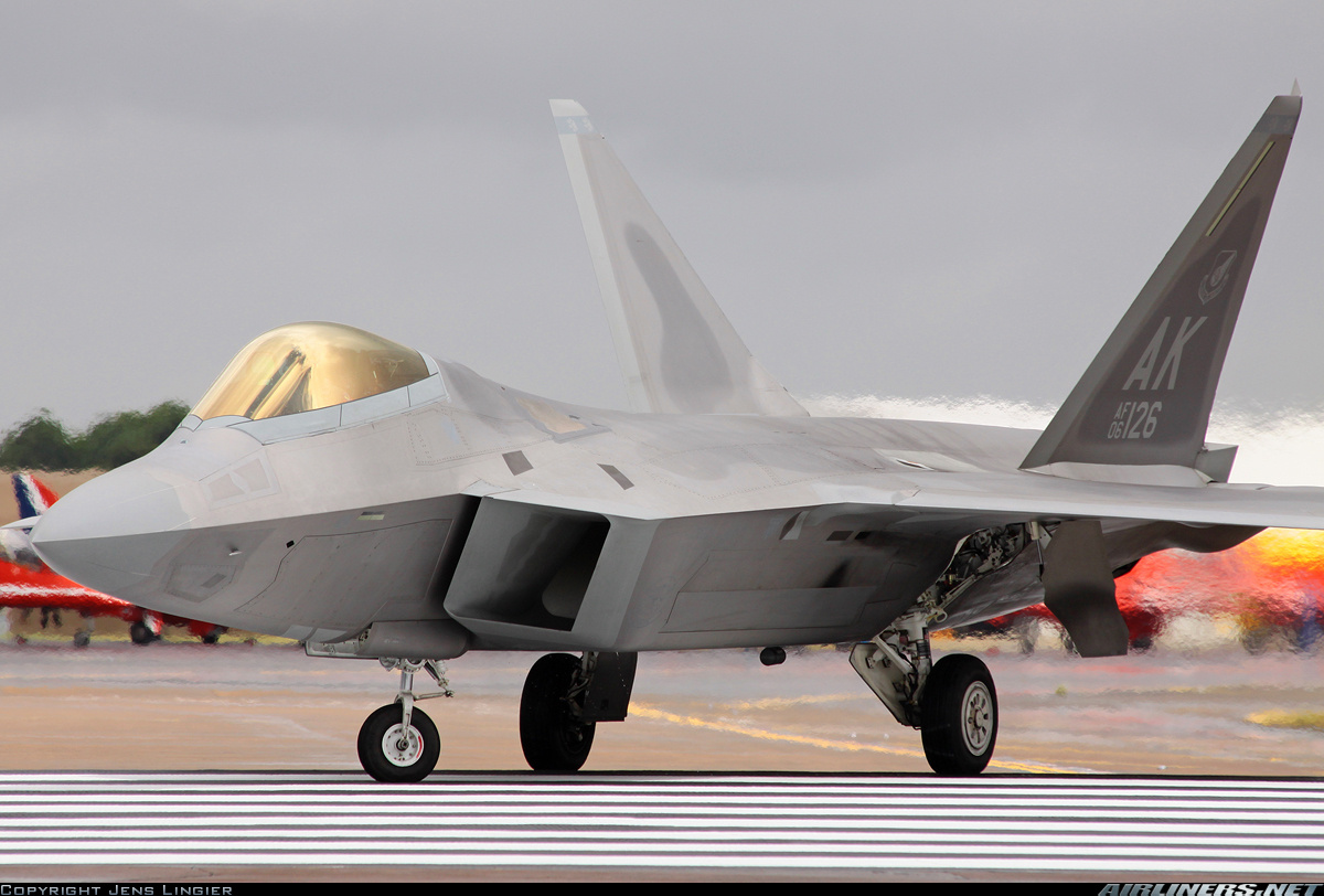 الأسلحة الرئيسية - التسليح منصة الأسلحة الرئيسية تحمل إما : 6 صواريخ متوسطة المدى بالتوجيه الرإداري إيه آي إم -120 أو صاروخين إيه آي إم -120 وصاروخين 1000-إل بي جي بي يو-32 صواريخ الهجوم المشترك المباشر للهجوم الأرضي. كما تحمل صاروخين متتبعين للحرارة قصيري المدى إيه أي إم ج-9، واحد على كل جانب من منصة الأسلحة، وكنتيجة لذلك يمكن للرابتور أن تطير على ارتفاعات عالية جداً وبعيدة جداً وسريعة جداً مع نسبة مخاطرة قليلة أن يتم كشفها أو اعتراضها ثم تضرب بحصانة تامة ضد الأهداف المحمولة جواً والأهداف الأرضية على حد سواء. وتعتبر هذه الطائرة خاصة بالجيش الامريكى فقط.