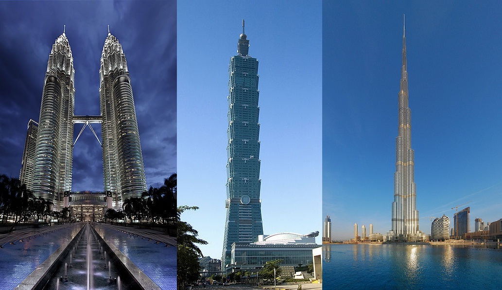 أكبر ناطحات سحاب في العالم: برج الخليفة، برجا بتروناس التوأم، تايبيه 101