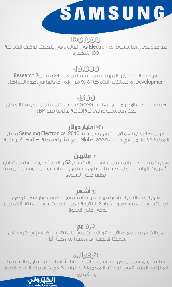 كوريا و منذ 50 سنة فقط كانت تعد أحد أفقر دول العالم، و خلال هذه الفترة الوجيزة حجزت لنفسها مكانا في المرتبة الثالثة عشر عالميا مع الدول الأكثر تطورا. في كوريا الجنوبية الكل يتنفس التقنية و هو بالمناسبة البلد الأكثر اتصالا بالإنترنت في الميترو و الشارع وصولا إلى القطارات حيث أن 95 % من السكان يملكون اتصالا ذو تدفق عالي و 60 % بالنسبة للولايات المتحدة الأمريكية للمقارنة، إنها أيضا موطن أكبر الشركات التقنية كـ LG و سامسونج هذه الأخيرة تعد الرقم واحد في العالم في مجال التكنولوجيا، و تفوق أرباحها تلك التي تحققها كل من شركات أبل، مايكروسوفت و جوجل مجتمعة. نحن اليوم أمام إمبراطورية إلكترونية بكل ما تحمله الكلمة من معنى و إذا لم تصدق ذلك بعد، تابع معنا إذا أول تقرير عن سامسونج و الذي لن تجده في مكان آخر غير موقع إلكتروني: إمبراطورية سامسونج.