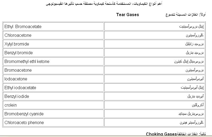ثانياً: تقسم الغازات الحربية من حيث التأثير الفسيولوجي على الإنسان إلي:
