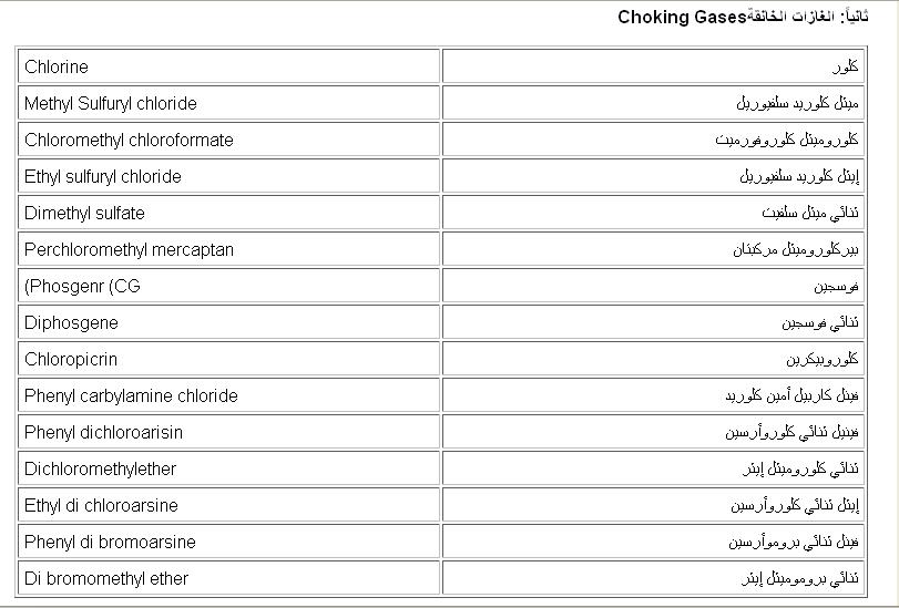 1. الغازات الخانقة: