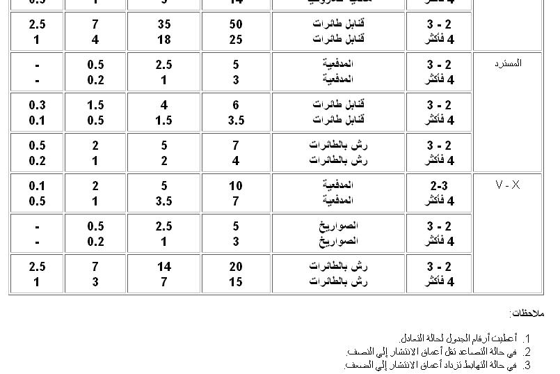 ب. قنابل المدفعية والهاونات.