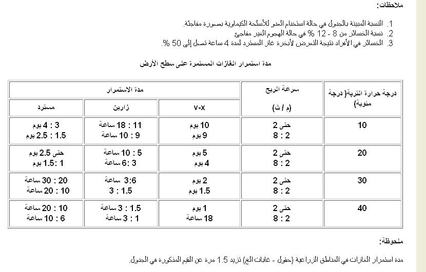 ثالثاً: تقسم الغازات الحربية من حيث مدة استمرارها في ميدان القتال إلى: