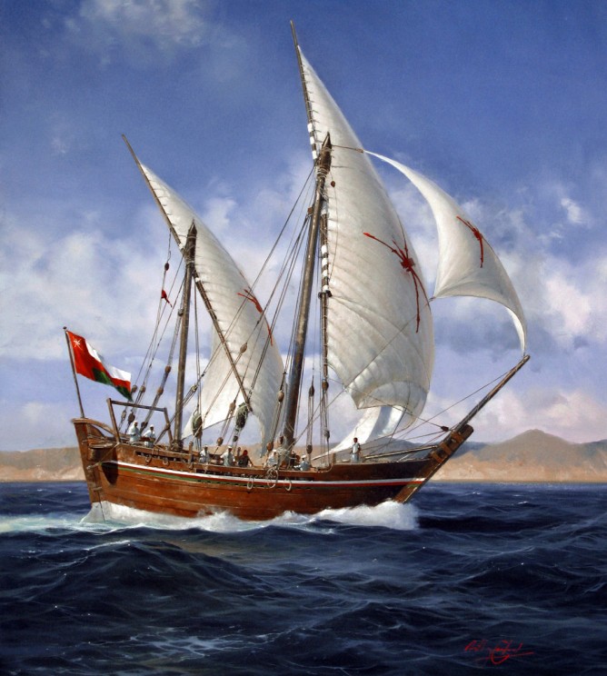 وماا زالت هذه السفن تصنع حتى اليووم في عماان بنفس اتقاان وجمال المااضي